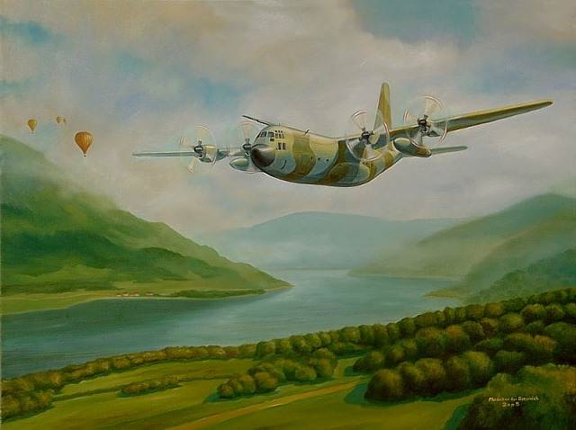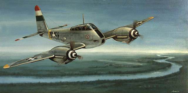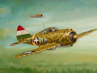 commission of the director of the Danubian Aircraft Company. It illustrates the first product of the Company, the Hungarian built Me-210. In the background the Danube and the Csepel Island can be seen, with the
